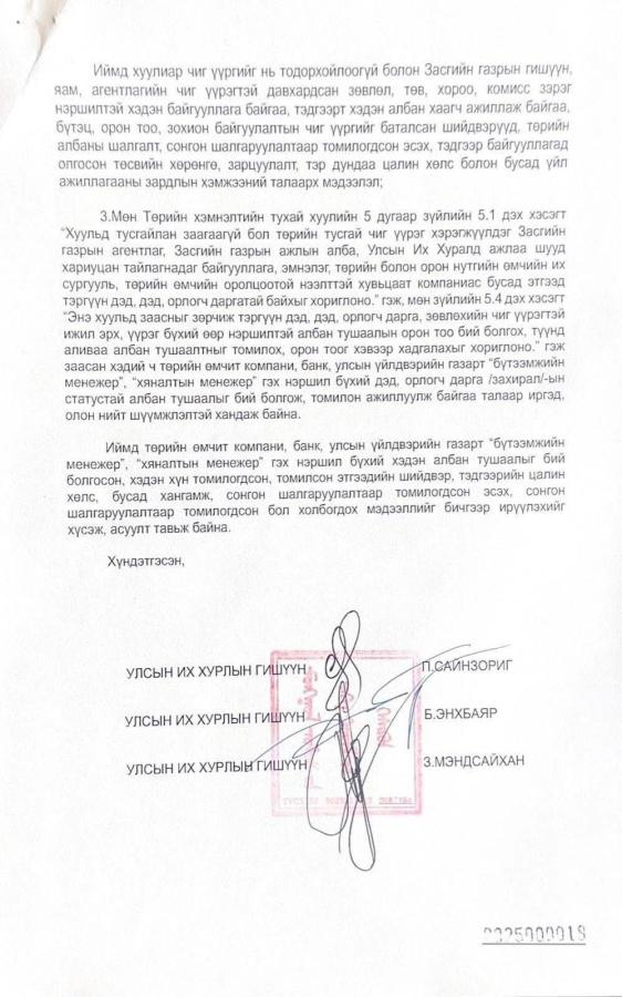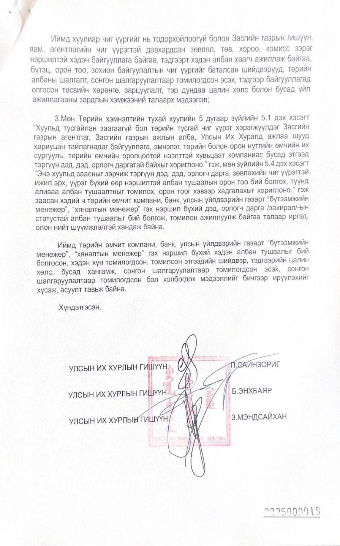 Улс орныг 15 давхраас удирдаж буй гэх яриа худлаа биш болж таарч байна. Нэн даруй энэ танхайрлаа зогсоохыг шаардаж байна" гэжээ.