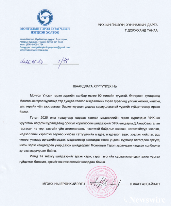 Хэвлэл мэдээллийн гэрэл зурагчид буюу гэрэл зургийн сурвалжлагчдыг 2025 оны тавдугаар сарын 15-ны өдрөөс эхлэн УИХ-ын чуулганы нэгдсэн хуралдаанд оруулахыг хориглоод байна.