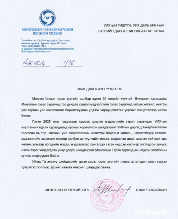 Гэтэл 2025 оны тавдугаар сарын 15-аас хэвлэл мэдээллийн гэрэл зурагчдыг Чуулганы нэгдсэн хуралдаанд орохыг хориглосон шийдвэрийг УИХ-ын дарга Д.Амарбаясгалан гаргасан нь төр, засгийн үйл ажиллагааны нээлттэй байдлыг хаасан, нөгөөтэйгүүр хэвлэл, мэдээллийн хэрэгсэл өөрөөр хэлбэл сэтгүүлчийн мэдээ, мэдээлэл авах, хэвлэн нийтлэх эрх чөлөө, улмаар иргэдийн мэдэх, мэдээллээр хангагдах гэсэн үндсэн хуулиар олгогдсон эрхүүд нэгэн зэрэг хөндөгдсөн учир дээрх шийдвэрийг Монголын Гэрэл зурагчдын нэгдсэн холбооны зүгээс эсэргүүцэж байна.