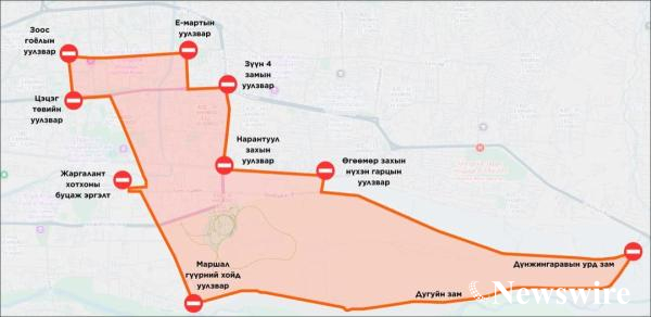 Хязгаарлалт эхэлж буй уулзвар болон замууд:
