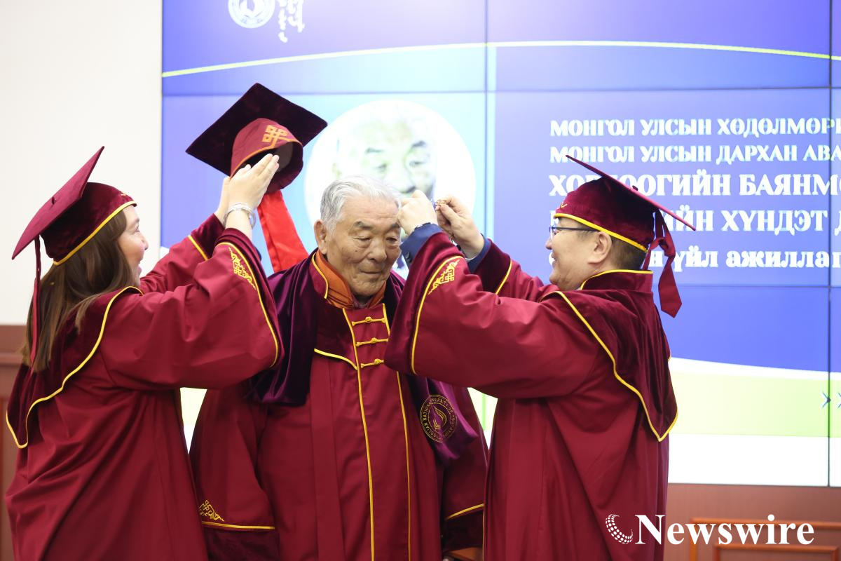 Монгол Улсын Боловсролын Их Сургууль (МУБИС)-ийн ахмад төгсөгч, Хөдөлмөрийн баатар, дархан аварга Хорлоогийн Баянмөнхөд МУБИС-ийн Эрдмийн зөвлөлийн 2025 оны тавдугаар сарын 14-ний өдрийн хурлын шийдвэрээр “ХҮНДЭТ ДОКТОР” цол олголоо.