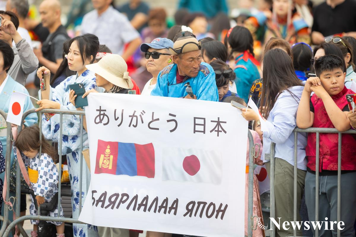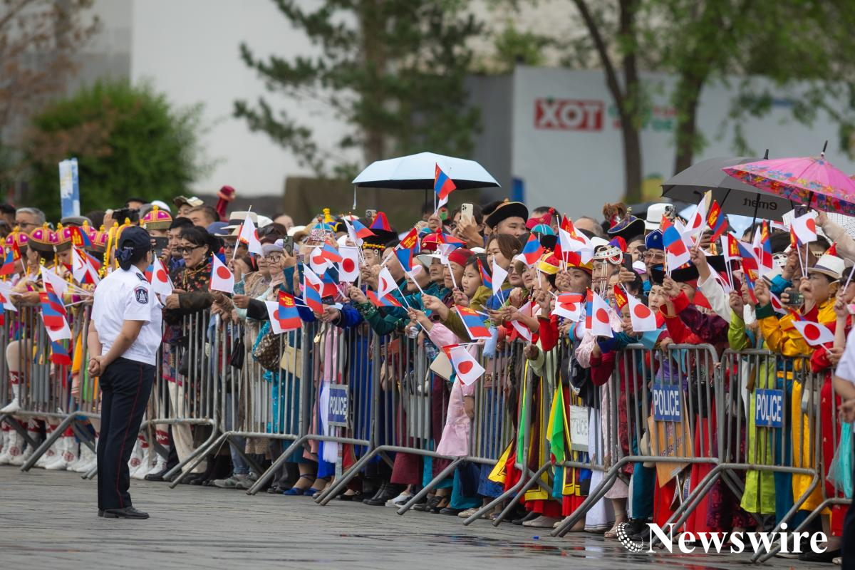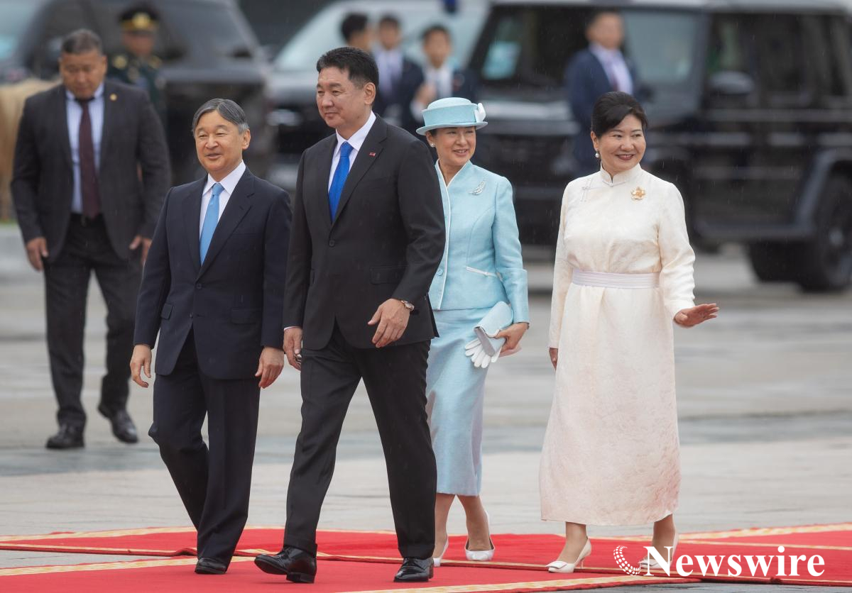 Монгол Улсын Ерөнхийлөгч Ухнаагийн Хүрэлсүх, гэргий Лувсандоржийн Болорцэцэгийн хамт Япон Улсын Цог Жавхлант Эзэн Хаан Нарүхито, Эрхэм дээд Хатан Масако нарыг Д.Сүхбаатарын талбайд албан ёсоор угтан авлаа.