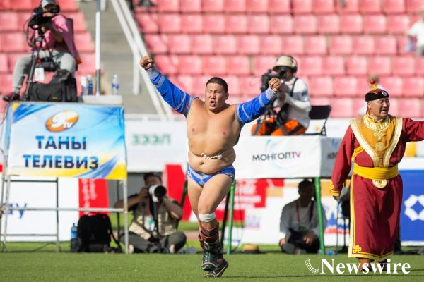 Тулгар төрийн 2232, Их Монгол Улсын 817, Үндэсний эрх чөлөө, тусгаар тогтнолоо сэргээн мандуулсны 112, Ардын хувьсгалын 104, Ардчилсан хувьсгалын 35 жилийн ойн Үндэсний их баяр наадмын хүчит бөхийн барилдааны зургаагийн даваанд тунаж барилдсан Баянхонгор аймгийн Жинст сумын харьяат, Улсын начин Э.Батмагнай Улсын харцага Б.Зоригтбаатараар зургаа давж, Монгол Улсын харцага цолын болзол хангалаа.
