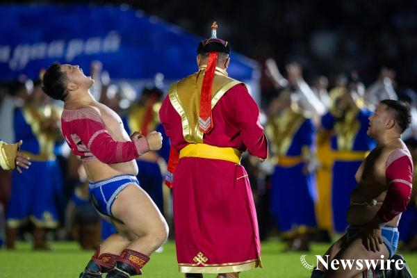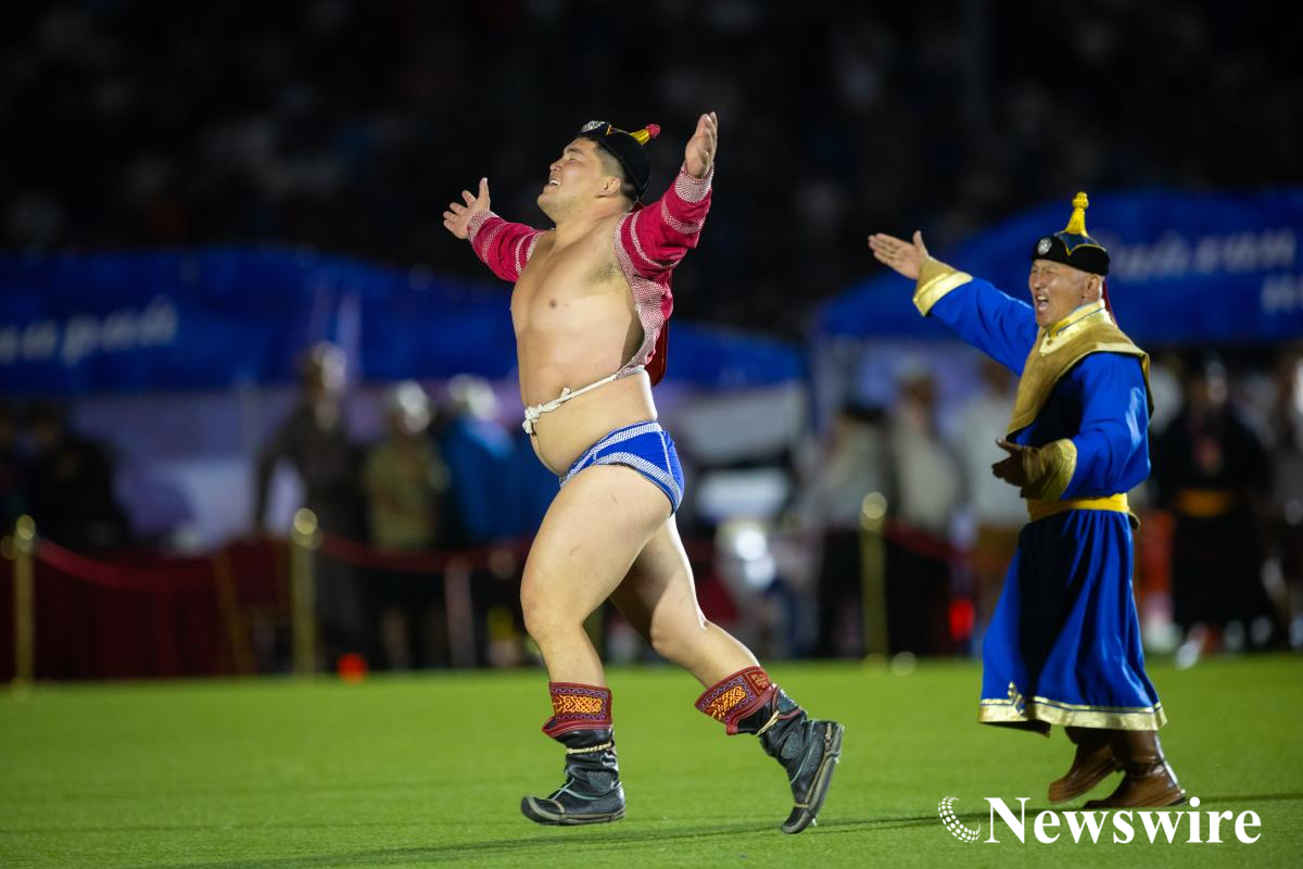 Тулгар төрийн 2232, Их Монгол Улсын 817, Үндэсний эрх чөлөө, тусгаар тогтнолоо сэргээн мандуулсны 112, Ардын хувьсгалын 104, Ардчилсан хувьсгалын 35 жилийн ойн Үндэсний их баяр наадмын хүчит бөхийн барилдааны есийн даваанд Баянхонгор аймгийн Жинст сумын харьяат, Улсын начин Э.Батмагнай, Сүхбаатар аймгийн Онгон сумын харьяат, Аймгийн арслан Н.Өсөхбаяраар ес давж түрүүлэн, Монгол Улсын арслан боллоо.