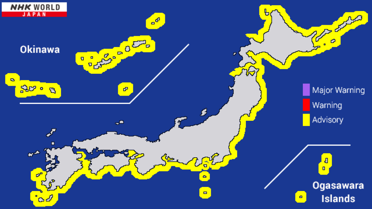 Японы цаг уурын агентлагаас мэдээлснээр, 229 хот суурингийн хоёр сая гаруй оршин суугчид нүүн шилжих, тэр дундаа далайн эргээс холдох, өндөрлөг газар руу яаралтай очих анхааруулга өгчээ.