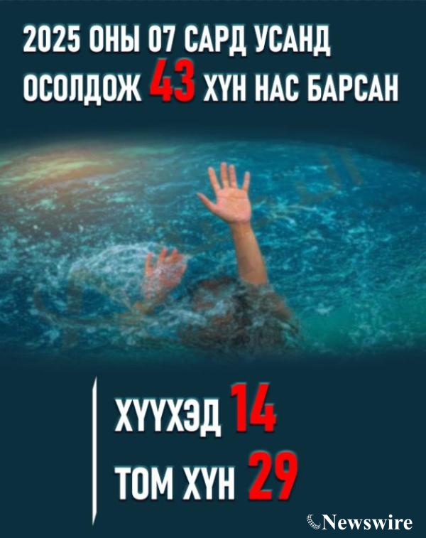 Урин дулаан зуны дэлгэр цагт хэн хүнгүй л агаар салхи, гол нуурын эрэг бараадаж үр хүүхдээ зугаацуулж, алжаал ядаргаагаа тайлахыг хүснэ. Гэвч энэ үедээ “анхаарал” гэдэг зүйлийг умартчихдаг бололтой. Ганцхан сарын дотор буюу энэ долоодугаар сард 43 хүн гол, нуурын усанд живж харамсалтайгаар амь насаа алдсаны 14 нь хүүхэд байна.