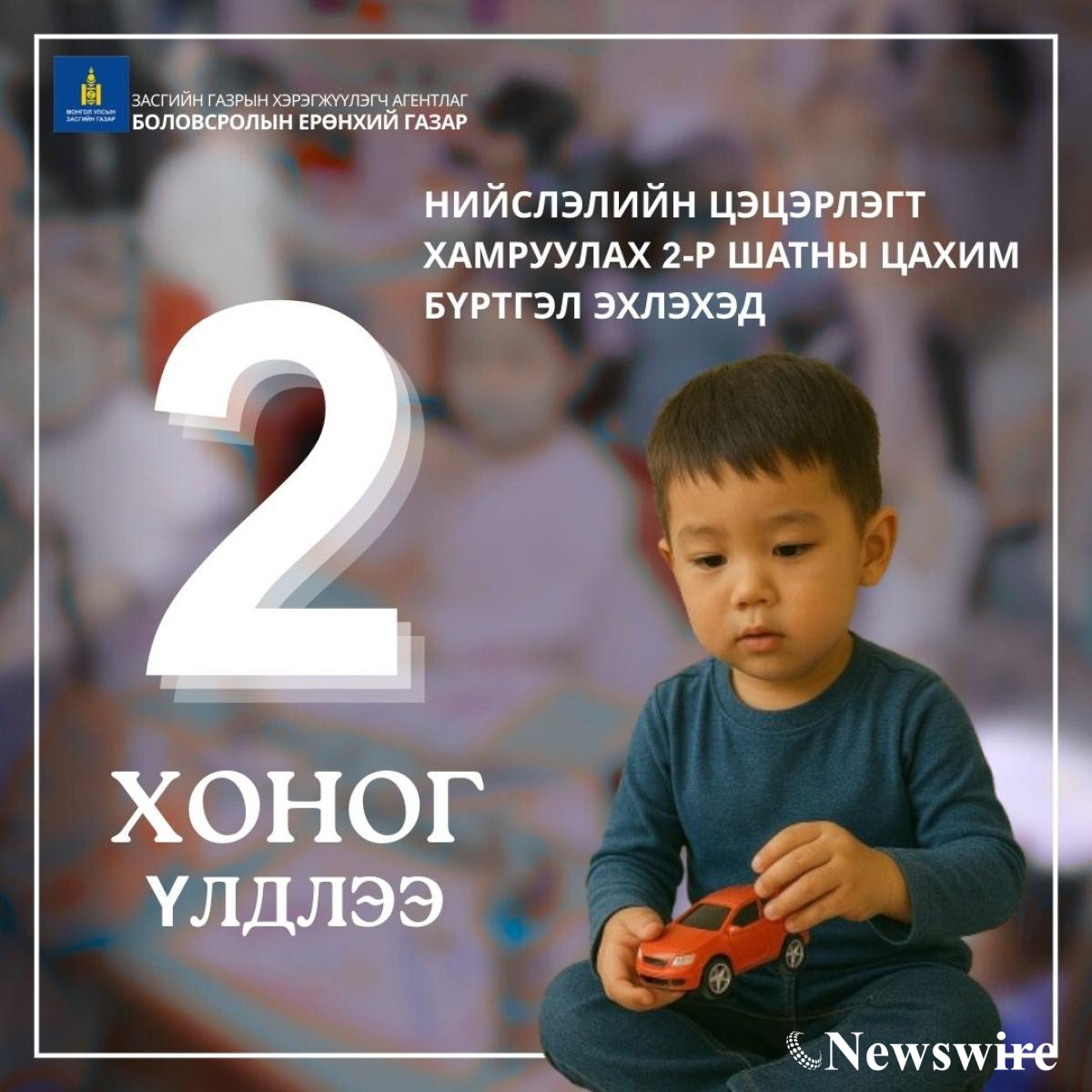 Нийслэлийн цэцэрлэгт хамруулах 2-р шатны хүсэлтийг 2025 оны 08 дугаар сарын 28-наас 2025 оны 09 дүгээр сарын 08-ны өдрийг дуустал e-Mongolia системээр хүлээн авна.