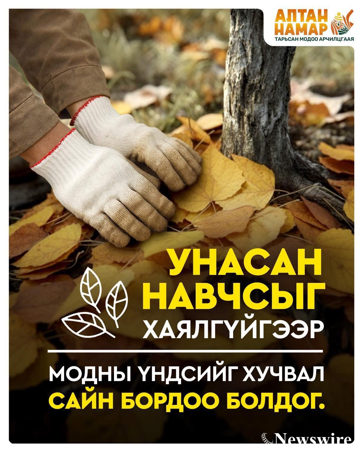 Монгол Улсын Ерөнхийлөгчийн Тамгын газар, Экологийн цагдаагийн алба, Мод үржүүлгийн чиглэлээр үйл ажиллагаа явуулж байгаа төрийн болон төрийн бус байгууллага, иргэдийн дэмжлэгтэй энэ 10 дугаар сарын 01-ний өдрөөс эхлэн “Алтан намар-Тарьсан модоо арчилцгаая” мэдээлэл нөлөөллийн аяныг улсын хэмжээнд зохион байгуулж эхлээд байна.