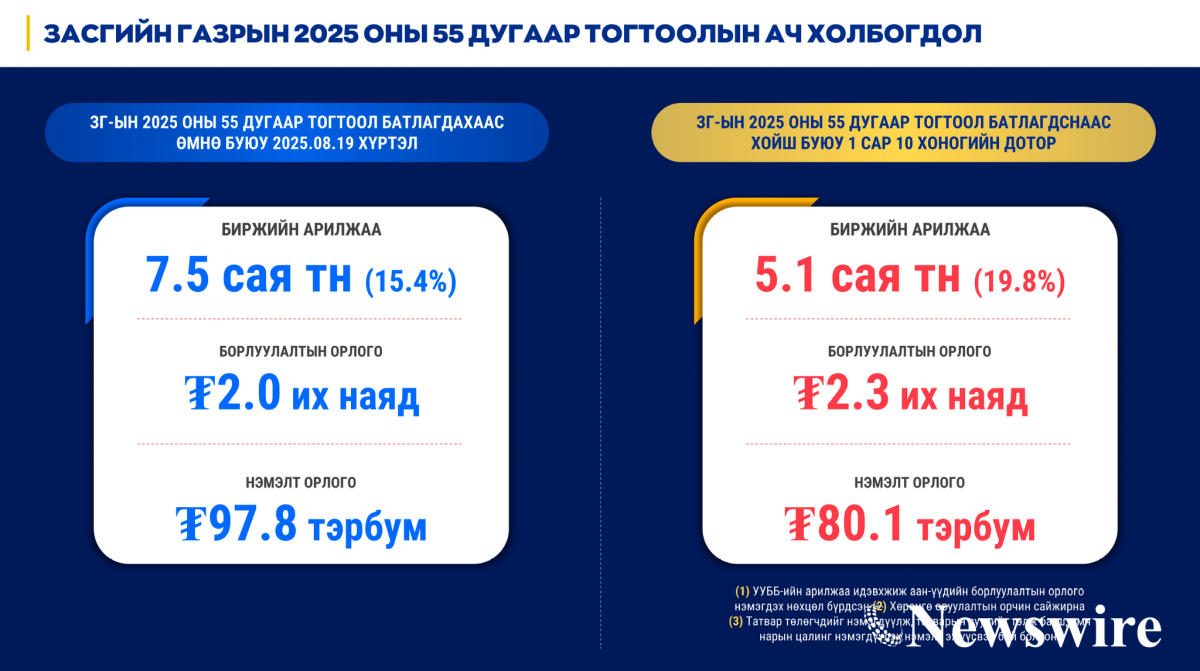 Нэгдүгээрт, биржийн арилжааг дэмжсэн шийдвэр. Биржийн арилжаа гэдэг бол хэн хамгийн өндөр үнэ санал болгосонд нь бүтээгдэхүүнээ худалдана гэсэн үг. Улсыг 200 тэрбум төгрөгөөр хохироосон гэх гүтгэлэг тарааж буй. Харин ч ил тод, өрсөлдөөнтэй арилжаанаас 120 гаруй тэрбум төгрөгийн нэмэлт орлого олно.