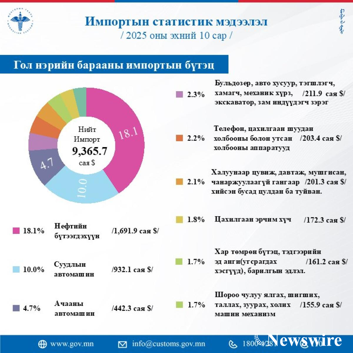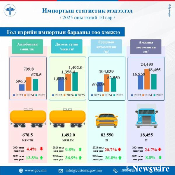 2025 ОНЫ ЭХНИЙ 10 САРЫН БАЙДЛААР АВТОБЕНЗИНИЙ ИМПОРТ 678.4 МЯНГАН ТОНН БОЛЖ ӨМНӨХ ОНЫ МӨН ҮЕЭС 4.4 ХУВИАР БУУРАВ.