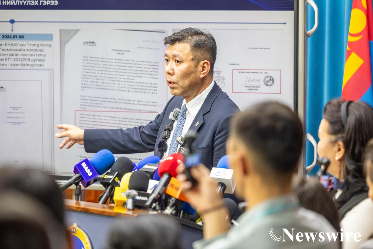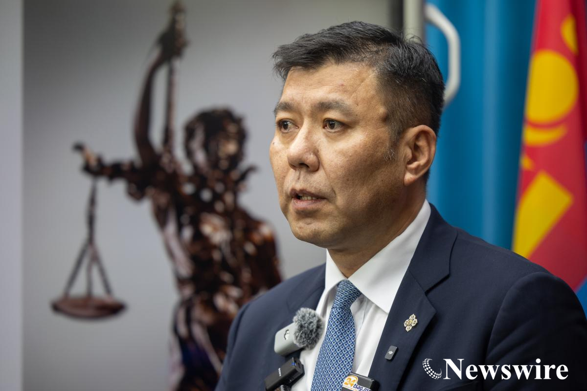 Хууль зүй, дотоод хэргийн сайд Б.Энхбаяр цаг үеийн асуудлаар мэдээлэл өгч байна.