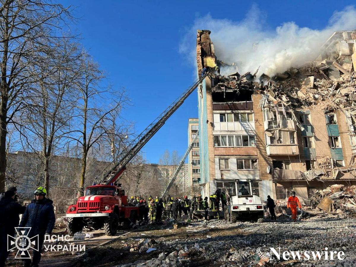 Тернопильд хэд хэдэн орон сууцны барилгын дээд давхрууд бүрэн нурсан бөгөөд гал унтраах ажиллагаа үргэлжилж байна.