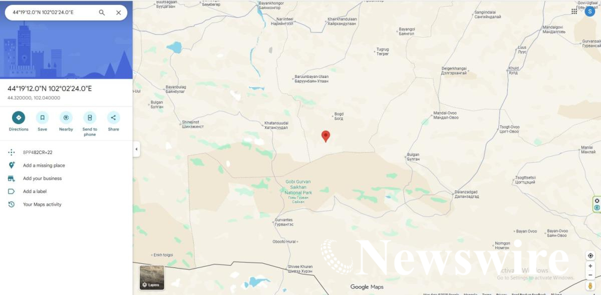 Өмнөговь аймгийн Сэврэй сумын төвөөс Хойд зүгт 81км