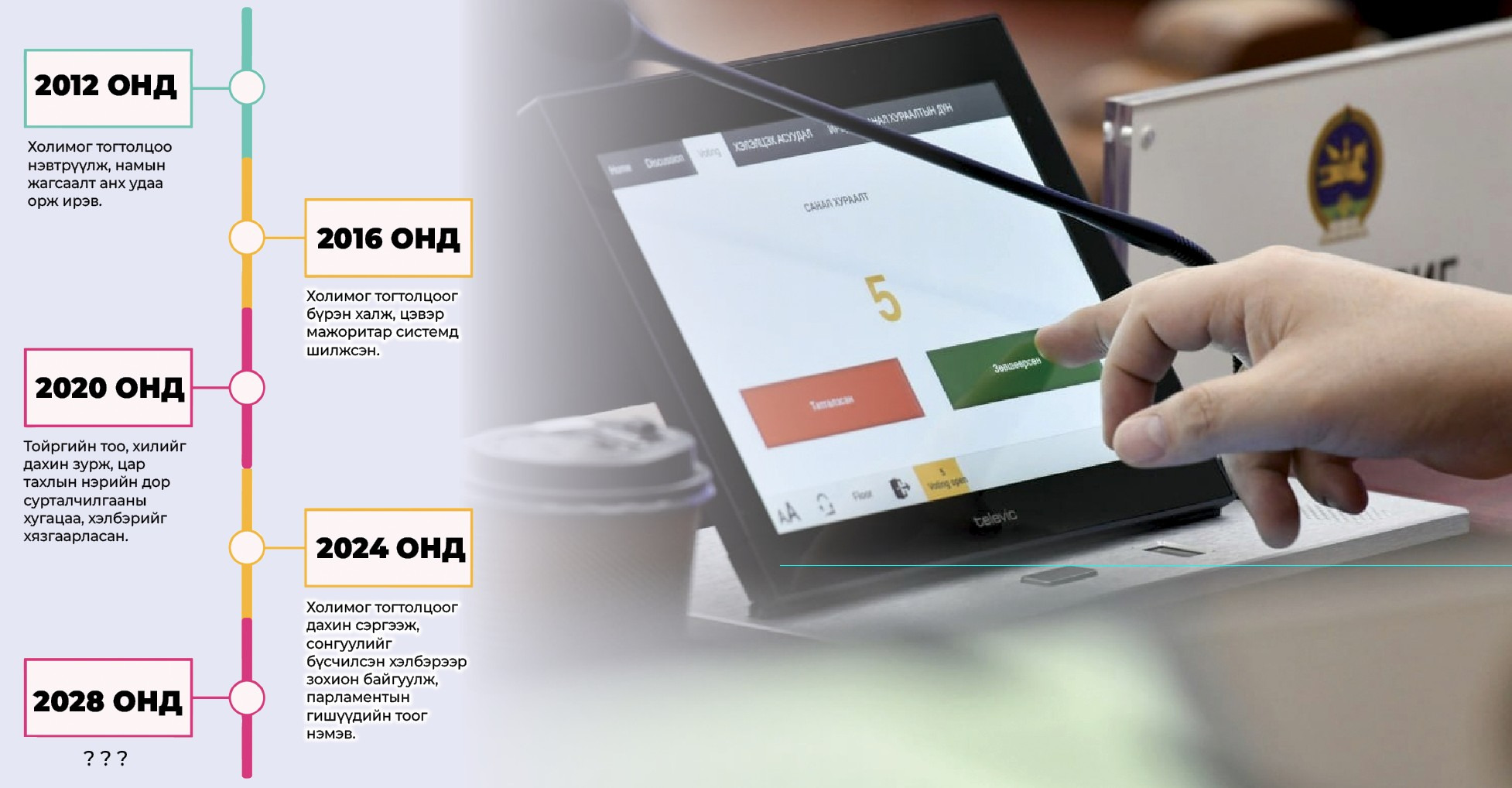 Сүүлийн хэдэн сонгуулийн хуулийн өөрчлөлтөөс харахад л ойлгомжтой.