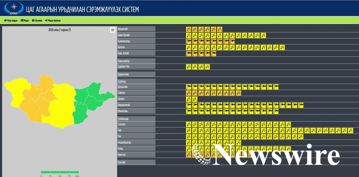 Цаг агаарын аюултай үзэгдлээс сэрэмжлүүлэх мэдээ: