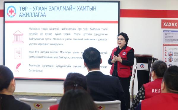 Монгол Улсын Шадар сайд Х.Ганхуяг Гамшгийн тухай хуулийг хэрэгжүүлэх, хүмүүнлэгийн үйл ажиллагаанд иргэдийн оролцоог нэмэгдүүлэх, эрсдэлийг даван туулах, олон нийтийн чадавхыг сайжруулах, нийгмийн эмзэг байдлыг бууруулахад шаардлагатай тусламж, дэмжлэгийн талаар санал дүгнэлт боловсруулах зорилгоор Шадар сайдын ахлах зөвлөх А.Даваажаргал, Онцгой байдал хариуцсан зөвлөх М.Батбаяр, Улсын онцгой комиссын Нарийн бичгийн дарга Т.Баярхүү болон холбогдох албаныхантай Монголын Улаан загалмай нийгэмлэгт ажиллав.