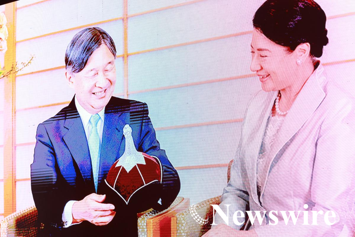 Хүлээн авалтын танхимд Японы уламжлалт бөмбөрийн “UB Drums” хамтлаг тоглолтоо сонирхуулснаас гадна өнгөрсөн оны долдугаар сард Цог Жавхлант Эзэн хаан болон Эрхэм дээд Хатан Монгол Улсад хийсэн айлчлалын үеийн зураг, бичлэгийг дэлгэцээр толилуулсан юм.