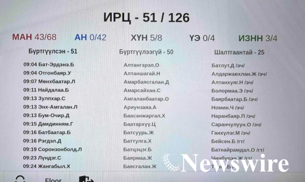 УИХ-ын чуулганы нэгдсэн хуралдаан /2026.03.19/ 10.00 цагт эхлэх байсан ч ирц хүрээгүйн (56 гишүүн ирсэн) улмаас хойшиллоо.