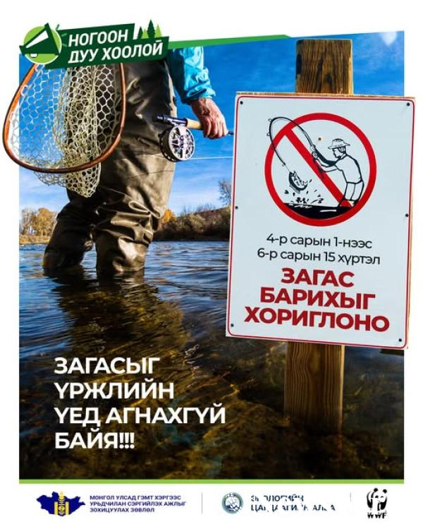 Жил бүрийн дөрөвдүгээр сарын 01-нээс зургаадугаар сарын 15-ны өдрийг хүртэл загас агнахыг хориглосон байдаг бөгөөд хориглосон хугацаа нь загасны үржлийн үе юм.
