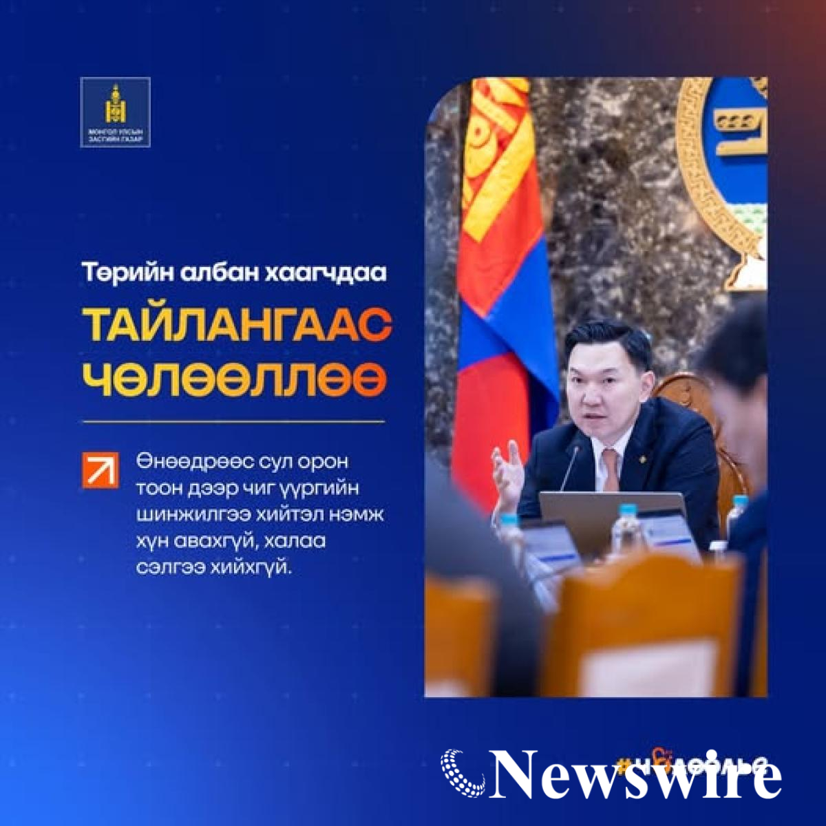 - Төрийн албаны сул 3000 орон тоонд хүн авахгүй байх үүргийг Яам, Аймаг, нийслэл, дүүрэг бүх шатны удирдлагуудад өглөө.