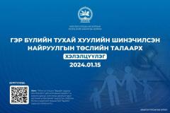 “Гэр бүлийн тухай хуулийн шинэчилсэн найруулгын төслийн талаарх” хэлэлцүүлэг болно