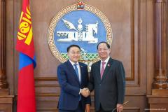 Монгол Улсын Их Хурлын дарга Д.Амарбаясгалан өнөөдөр (2025.08.29) Бүгд Найрамдах Казахстан Улсаас Монгол Улсад суугаа Элчин сайд Алмас Сейтакыновыг хүлээн авч уулзлаа.